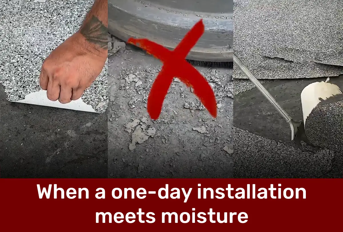 Two-day installations are superior to one-day installations because of their ability to manage moisture effectively and ensure proper curing. On the first day, a slower-curing, moisture-mitigating 100%-solids epoxy primer is applied as a moisture vapor barrier. This slower-curing, high-build coat deeply penetrates the concrete to create a solid, moisture-resistant foundation. This application method prevents moisture (and the resulting hydrostatic pressure) from creating serious issues like bubbling and peeling.